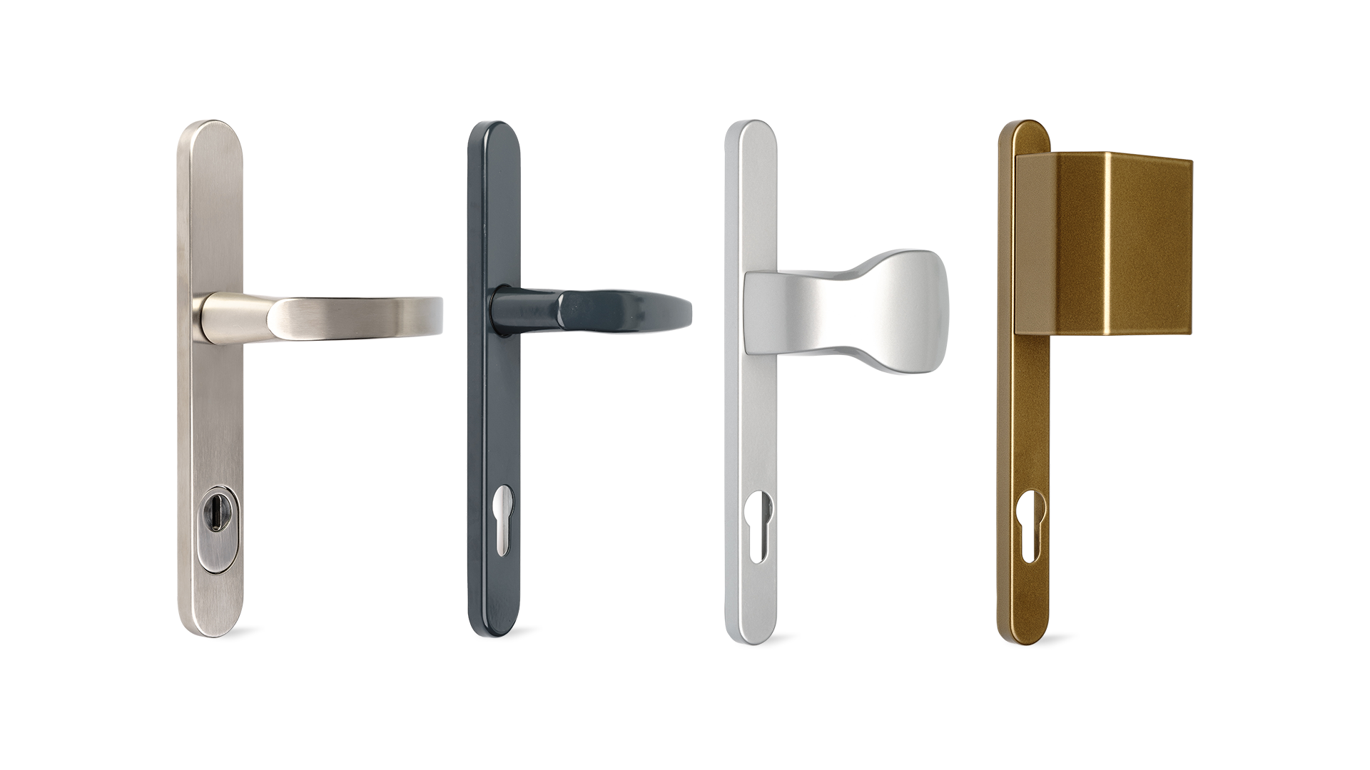 Die Auswahl der Drücker ist groß. Von einfachen und soliden Drückern bis hin zu Drückerknöpfen, aufbohrsichere und flache für Rollläden.