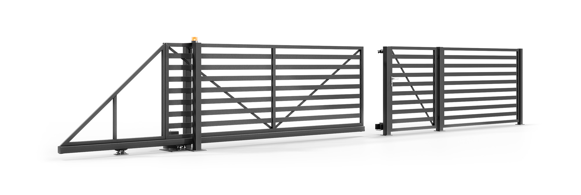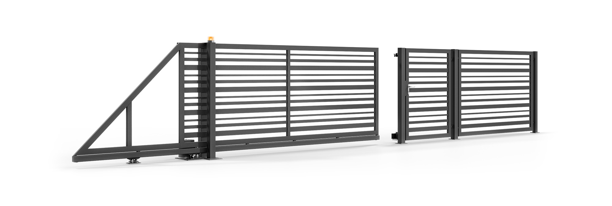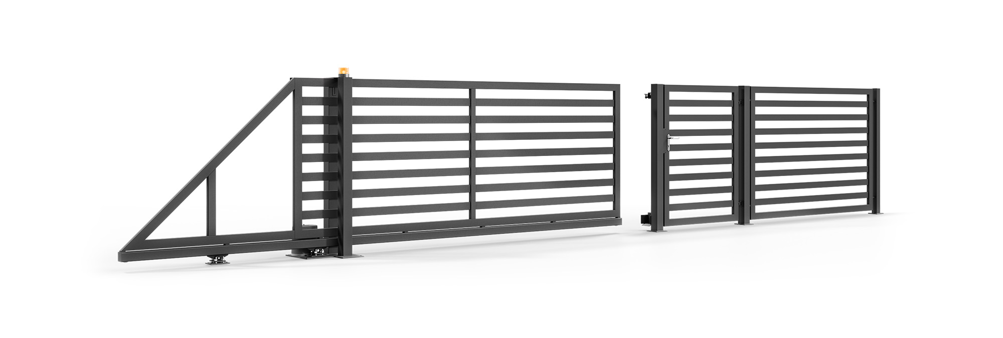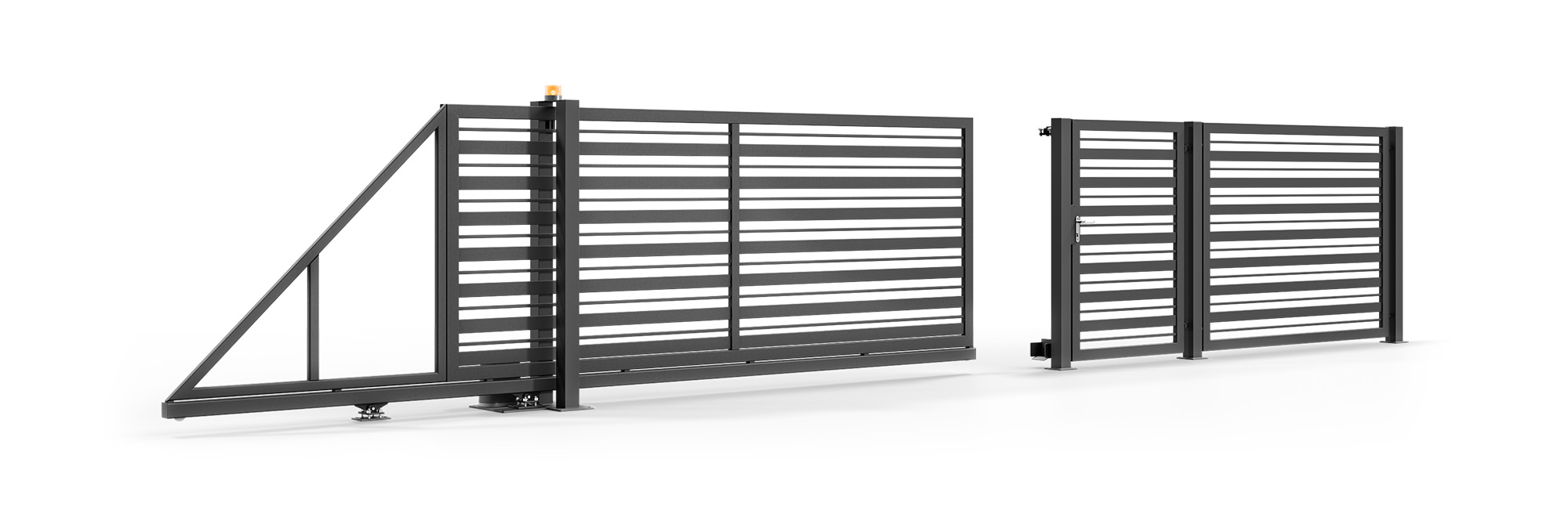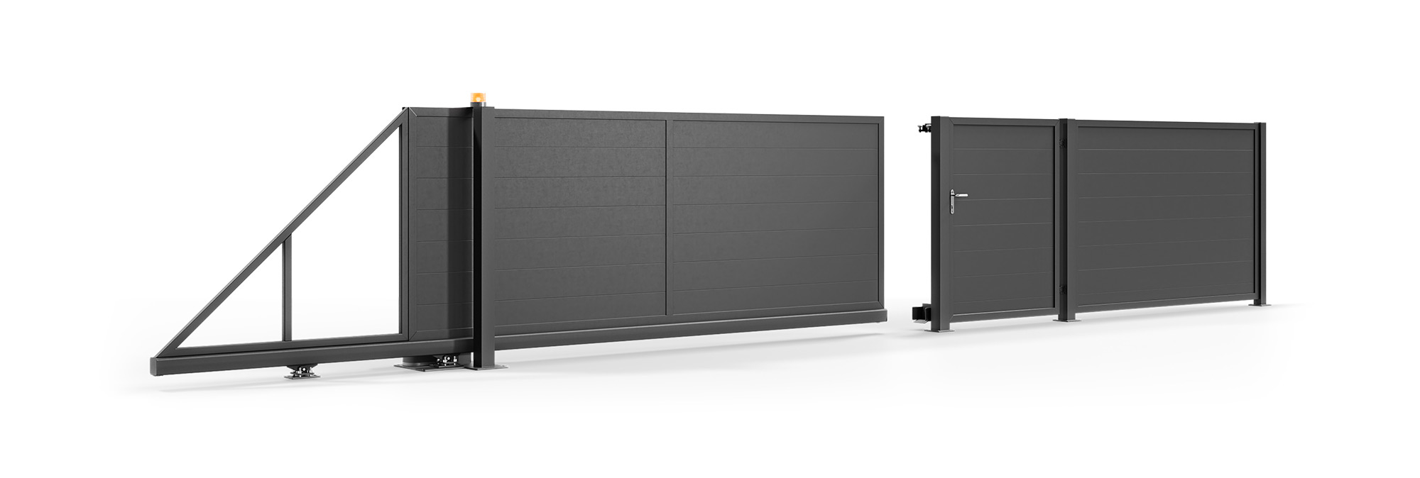 Beim Zaun können die verschiedenen Paneeloberflächen im Bicolor-Verfahren frei kombiniert werden. Neben der Standardlackierung in allen RAL-Farben sind auch Strukturfarben und Aluminiumpaneele in Winchester-Holzimitation erhältlich.